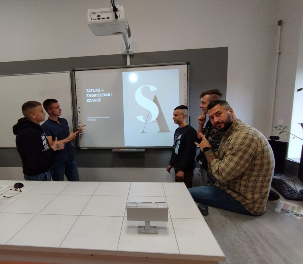 08 października mieliśmy ogromną przyjemność przekazać młodzieży naszą wiedzę w zakresie tatuażu, zarówno tę związaną z historią, jak również z tytułu zdrowia, a raczej zagrożeń dla niego ze strony nieprofesjonalnego wykonania zabiegu przerwania ciągłości tkanki. Mamy nadzieję, że wiedza się przyda, a my będziemy mieli w przyszłości mniej do naprawiania 😉 A to krótka fotorelacja z wydarzenia: