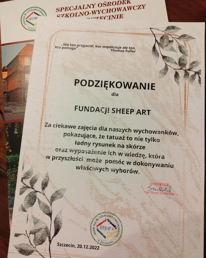 Mieliśmy okazję do spędzenia paru fajnych godzin z jeszcze fajniejszymi wychowankami tej placówki i ich opiekunami, za co serdecznie dziękujemy Trochę historii i ciekawych informacji o powstaniu tatuaży, warunkach w jakich powinny być wykonywane, stylach i artystach, którzy je robią … to tylko kilka fajnych tematów, które poruszane były na dzisiejszych zajęciach Fundacja Sheep Art#sosw2szczecin#winternaciefajniejest#fundacjasheepart